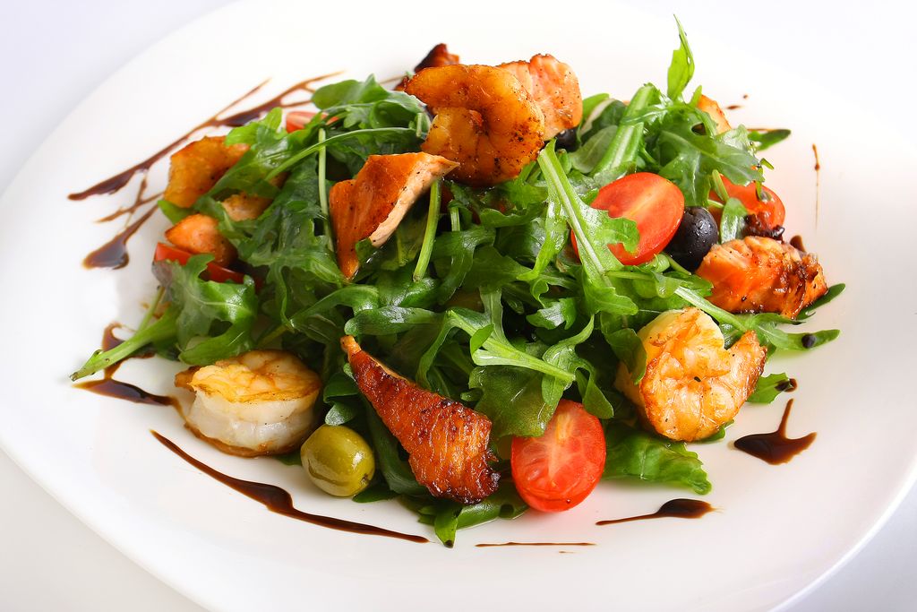 Добавить в избранное Убрать из избранного САЛАТ С ТИГРОВЫМИ КРЕВЕТКАМИ 710 ₽ В корзину В корзину Обжаренные тигровые креветки с лососем, свежие томаты, листья салата руккола и оливки. Заправляется оливковым маслом и соком лайма. 280 г Обжаренные тигровые креветки с лососем, свежие томаты, листья салата руккола и оливки. Заправляется оливковым маслом и соком лайма. 280 г