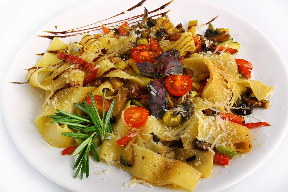 Добавить в избранное Убрать из избранного ВЕДЖИТОРИАНО 600 ₽ В корзину В корзину Лапша с оливковым маслом, обжаренными шампиньонами, баклажанами, болгарским перцем, цукини, брокколи,томатами и луком порей. 300 г Лапша с оливковым маслом, обжаренными шампиньонами, баклажанами, болгарским перцем, цукини, брокколи,томатами и луком порей. 300 г